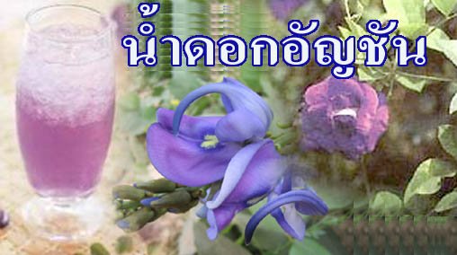 คงไม่ต้องเดาว่า ถ้าเราจะทำน้ำดอกอัญชัน หรือผสมอัญชันเป็นสารแต่งสีในขนมต่างๆ เช่นขนมชั้น ขนมขี้หนู วุ้นกระทิ ถั่วแปบ ซ่าหริ่ม ขนมเรไร ขนมน้ำดอกไม้ เหล่านี้นั้น จะมีประโยชน์อย่างไรต่อสุขภาพ ตำรายาไทยยังได้กล่าวถึงสรรพคุณของอัญชันไว้ว่า รากมีรสเย็นใช้เป็นยาขับปัสสาวะ แก้ปัสสาวะพิการ เป็นยาระบาย ช่วยบำรุงสายตา แก้ตาอักเสบ ตาฟาง ตาแฉะ นอกจากนี้ยังมีการนำรากอัญชันมาถูฟันแก้ปวดฟัน ทำให้ฟันคงทนแข็งแรง เมล็ดใช้เป็นยาระบายแต่จะทำให้คลื่นไส้อาเจียน